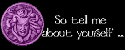 So how did you find me? Ummmm....... It came to me in a dream My psychic told me I saw you on alt.gothic From a luverly webring I saw you on alt.gothic.fashion From another Domain My Alphabits cereal spelled out your address From a friend (a really cool friend) You mean this isn't Disneyland? From another Goth page The voices in my head told me Just surfed on! The men in the little white jackets told me You begged me to visit your page You signed my guestbook