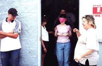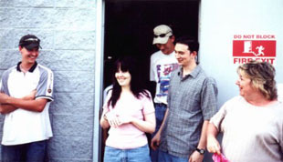 of the emergency exits that lead to the side of the building.