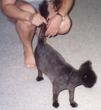 This time she let him have a little poof at the end of his tail. He's hilarious to look at and seems to like all the attention his furless self brings on.